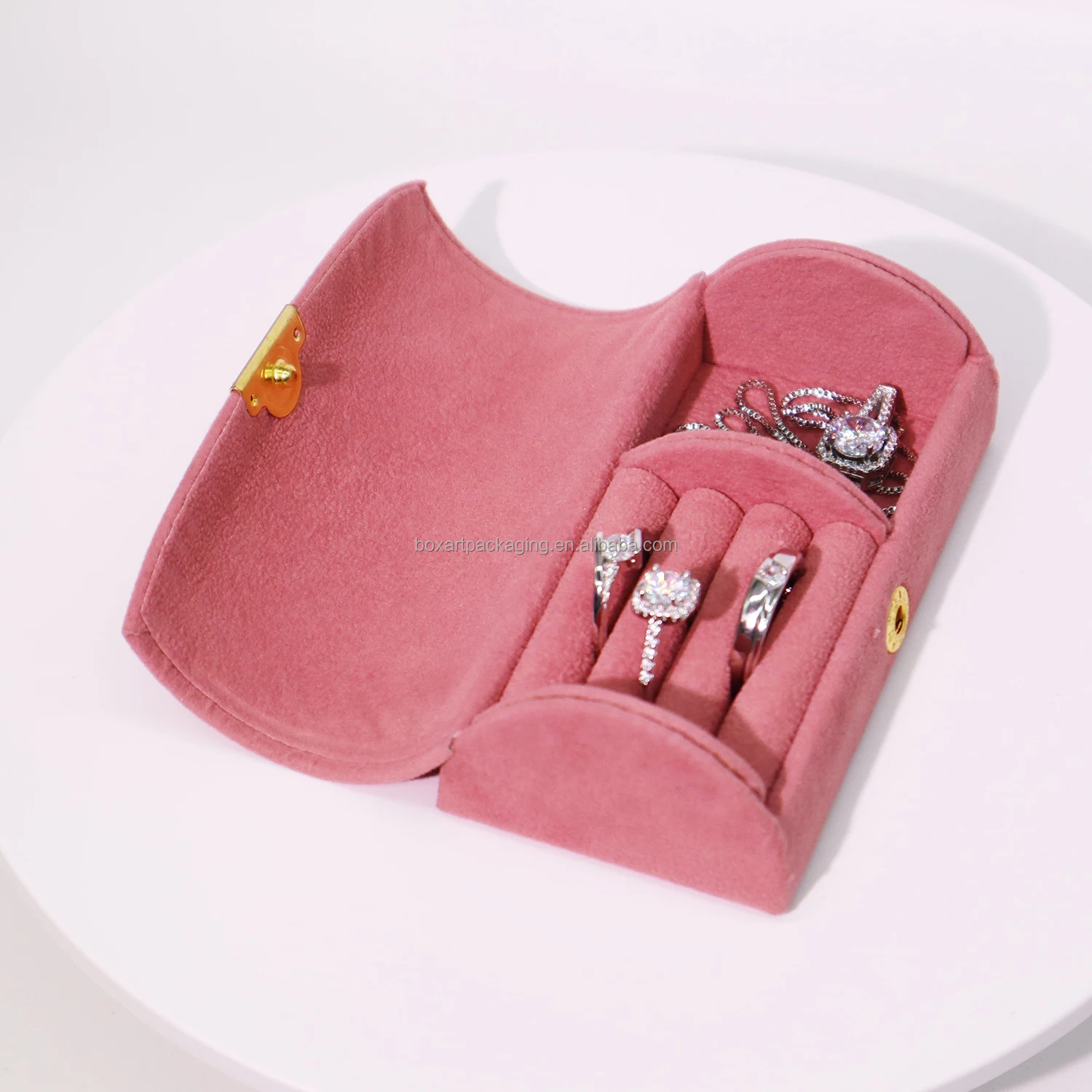 Boxart Packaging Custom Wholesale pink Travel Jewelry Storage case Box for Earrings Rings Necklace Jewelry Organizer case