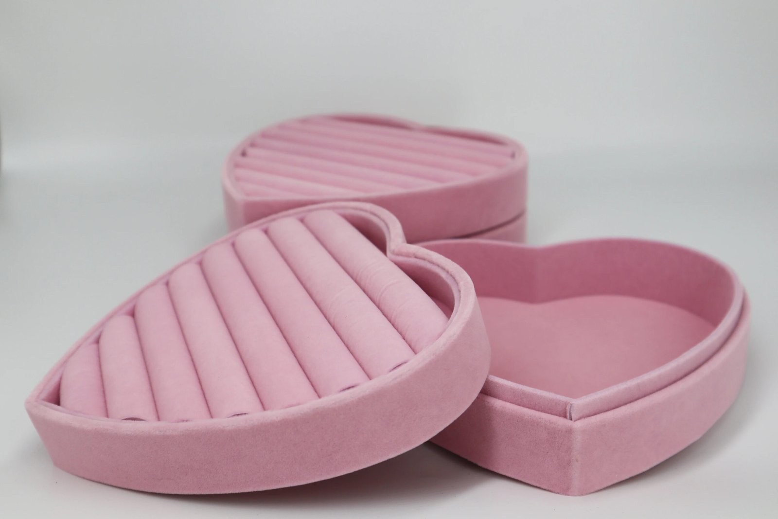 - Model Number : Velvet hearted-shape boxes for ring display