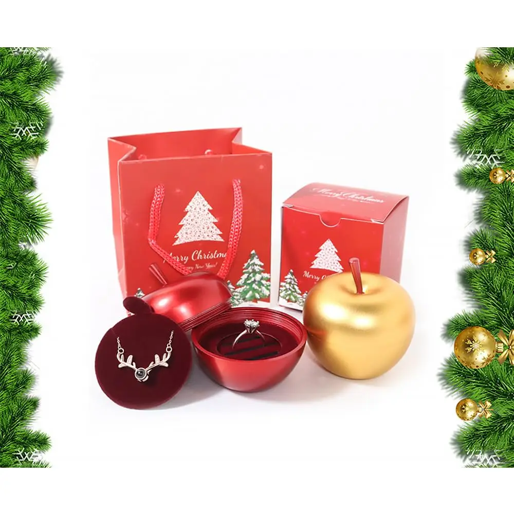 Red Apple Jewelry Box Christmas Gift Two Floors Red Ring Box Gold Necklace Box Cute Ring Case for Proposal Christmas Wedding