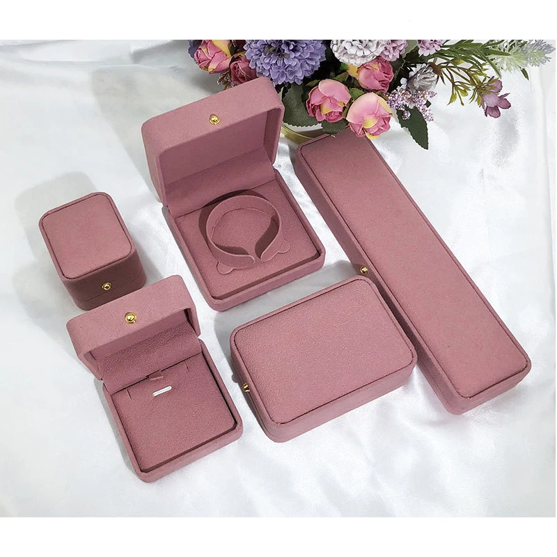 Factory direct gold buckle rounded pink velvet jewelry box spot ring box pendant box bracelet box jewelry box